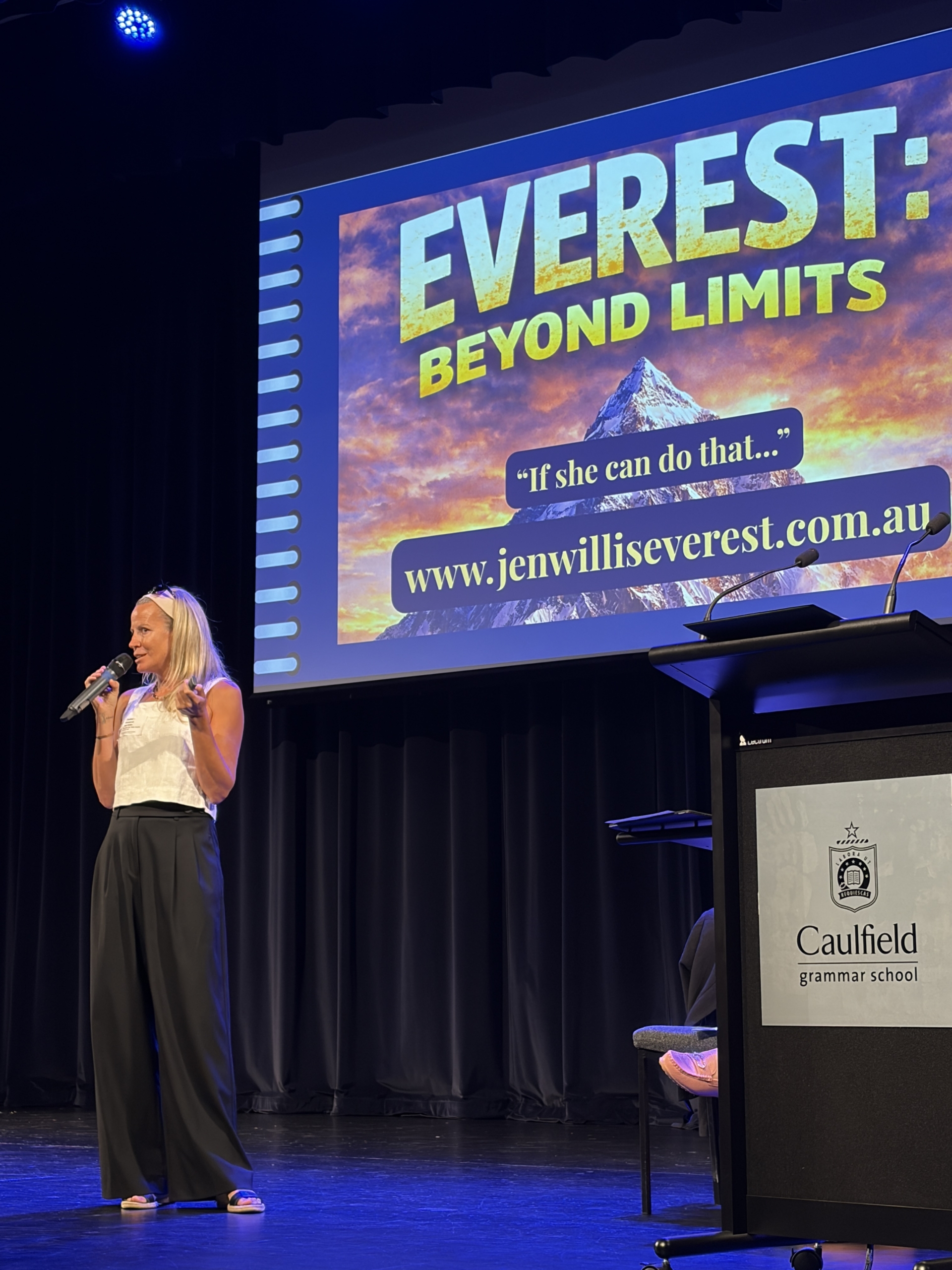 Meanwhile, at Wheelers Hill Campus, students heard from mountaineer Jennifer Willis, who is preparing to become the first Australian with multiple sclerosis to reach the summit of Everest. Diagnosed with MS in 2018, Jennifer chose not to step back, but to step forward – committing to live with clarity, courage, and purpose.
